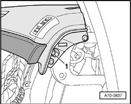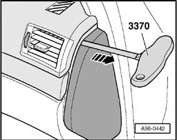 - Pull off right instrument panel cover - arrow - using special hook 3370.