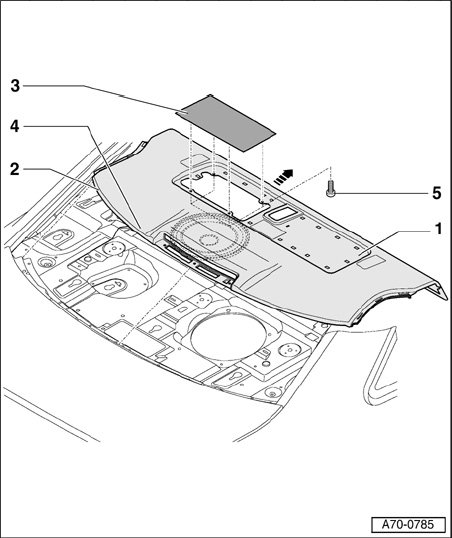 NOTE: In the following, removal is described in three versions, depending on whether a rear shelf without fixtures, with speakers or with speakers and sun shade is to be removed. The following steps beneath "All" are again valid for all three variations.