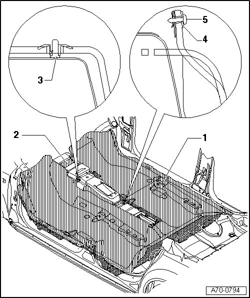 - Before installing a new floor mat - 1 -, remove transport web - 2 -.