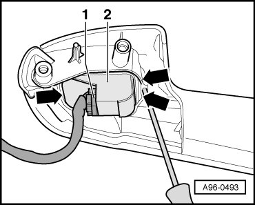 - Disconnect connector - 1 - at mirror adjuster switch - 2 -.