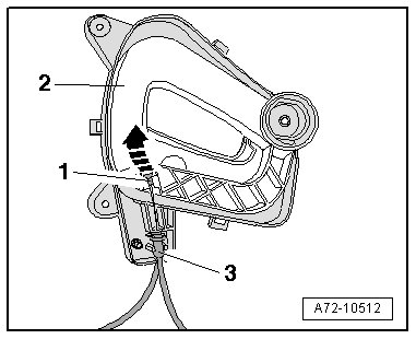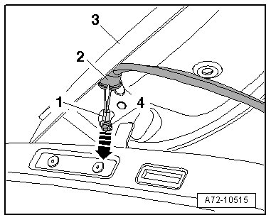 - Disengage actuating link eye - 1 - at backrest lock release lever - 4 - by sliding eye forward - arrow - and removing.