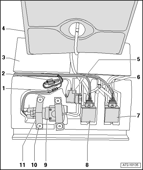 Secured using rubber strap - 11 - and plastic plugs - 10 -