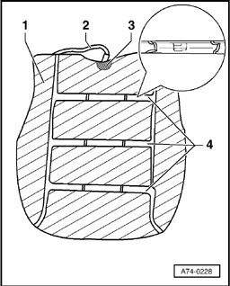 - Align heating element - 1 - on seat surface, remove protective foil and glue heating element to cushion.