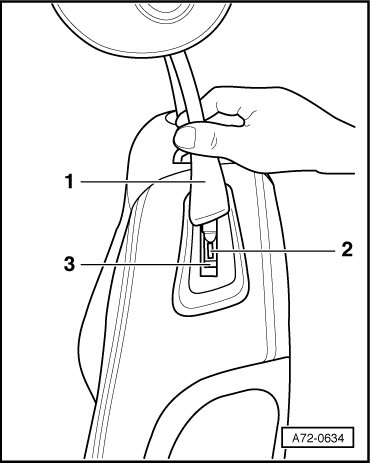 - Pry the tab - 3 - out of the metal pin - 2 - with a screwdriver and at the same time, remove the handle - 1 -.