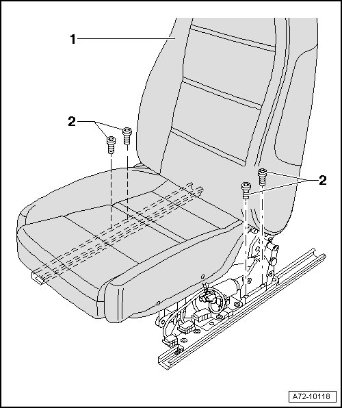 - Remove two rear microencapsulated bolts - 2 - to seat rail on left and right.
