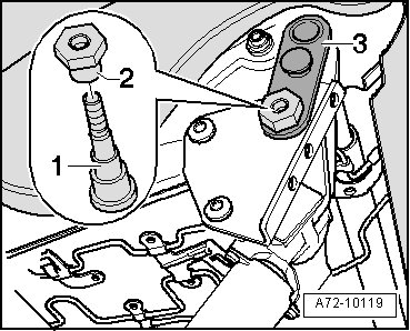 - Loosen shoulder pin - 1 -, nut - 2 - and lever - 3 - on height adjuster gearing and remove shoulder pin - 1 -.