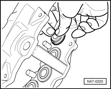 - Thinly coat the piston and seal with lithium grease (G 052 150 A2) before inserting.