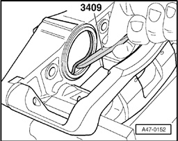 - Apply a thin coat of lithium grease G 052 150 A2 to piston and seal before inserting.