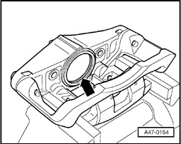 - Push protective seal onto brake caliper housing so that it lies against the housing all round.
