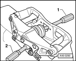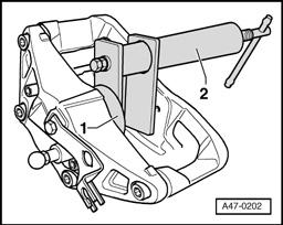 - Press in protective cap with special tool - 1 - and - 2 -.