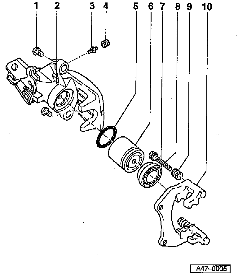 • Apply a thin coat of lithium grease (G 052 150 A2 ) to the brake cylinder, piston and seal.