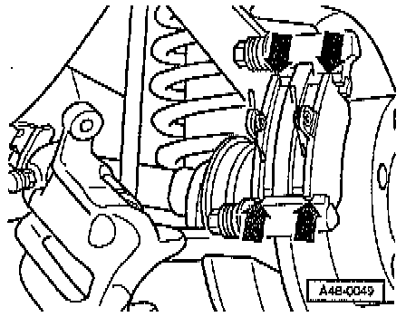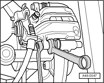 - Remove the securing bolts from the brake caliper housing, while counter holding on the guide pins.