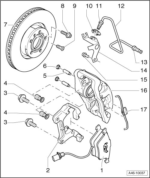 13 - Brake line fitting to brake caliper, 17 Nm