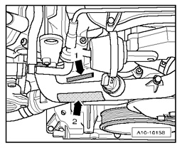^ The engine number ("engine code" and "serial number") is located at front on cylinder block, below right cylinder head - arrow 1 -.