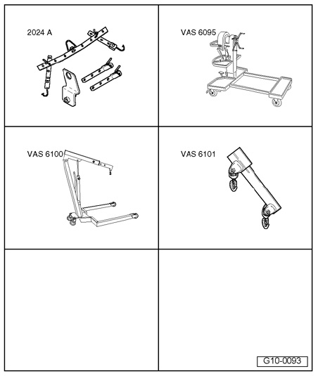 ^ Engine and transmission holder VAS 6095 with bracket VAS 6095/1-5
