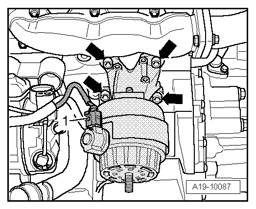 - Remove bolts - arrows - and remove left engine mount.