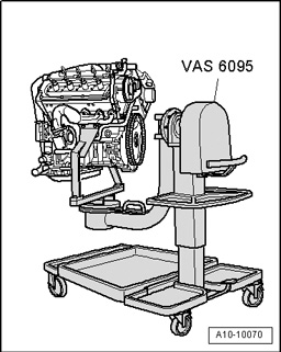 - Secure engine on Engine and Transmission Holder VAS 6095 with bracket for V6 FSI engine VAS 6095/1-5 as shown in illustration.