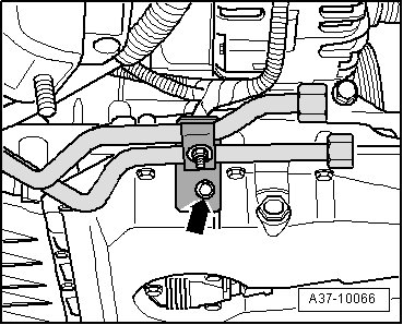 - Remove bracket - arrow - for ATF lines on oil pan.