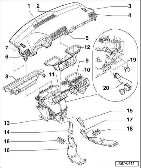 - The following illustration shows a instrument panel of the type installed in a Saloon or Avant up to VIN 399999 in Model Year 2005. The shape of the instrument panel on a Cabrio and for a Saloon or Avant as of VIN 400000 in Model Year 2005 (gradual introduction for the Cabrio in week 46/04 without prior specification of any particular VIN) differs slightly from this illustration.