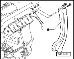 - Remove support - A - for instrument panel cross member (on passengers side at transmission tunnel).