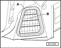 - The illustration shows the air extraction vent for a Saloon with the rear bumper removed. A different type of air extraction vent is installed on the Avant.