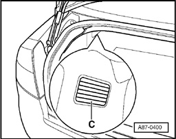 - To ensure proper functioning of passenger compartment ventilation, the vent openings - C - in the luggage compartment lining are never to be sealed off.