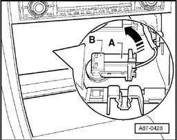 - Reach through opening for operating and display module, Climatronic Control Module J255 and disconnect connector - A -.