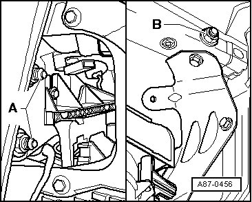 - Loosen hex nuts - A - for the left instrument panel cross member and unscrew them by approx. 15 mm.