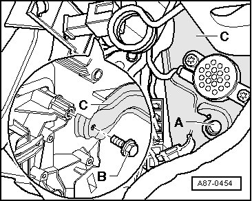 • In vehicles with electrically adjustable seats, move the seats back as far as possible before disconnecting the battery (A).