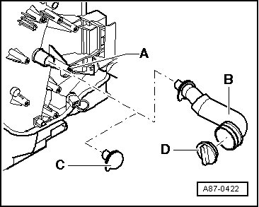In vehicle without cooling for the glove compartment, bore - A - is sealed with a sealing plug - C -.
