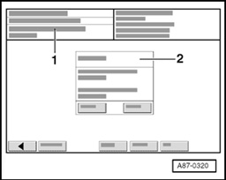 - A box appears in display zone - 2 - with a message indicating that touching OK key will erase data (of fault memories) and requiring confirmation that function must be implemented.
