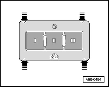 - Pry Garage Door Opener Control Head (E284) out of sun visor at placed marked with - arrows -.