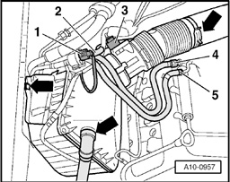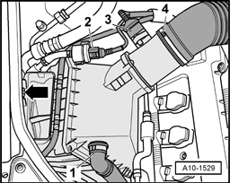 - Remove air intake hose - 1 - between turbocharger and air cleaner housing.