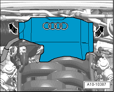 - Remove rear engine cover in direction of - arrows - .