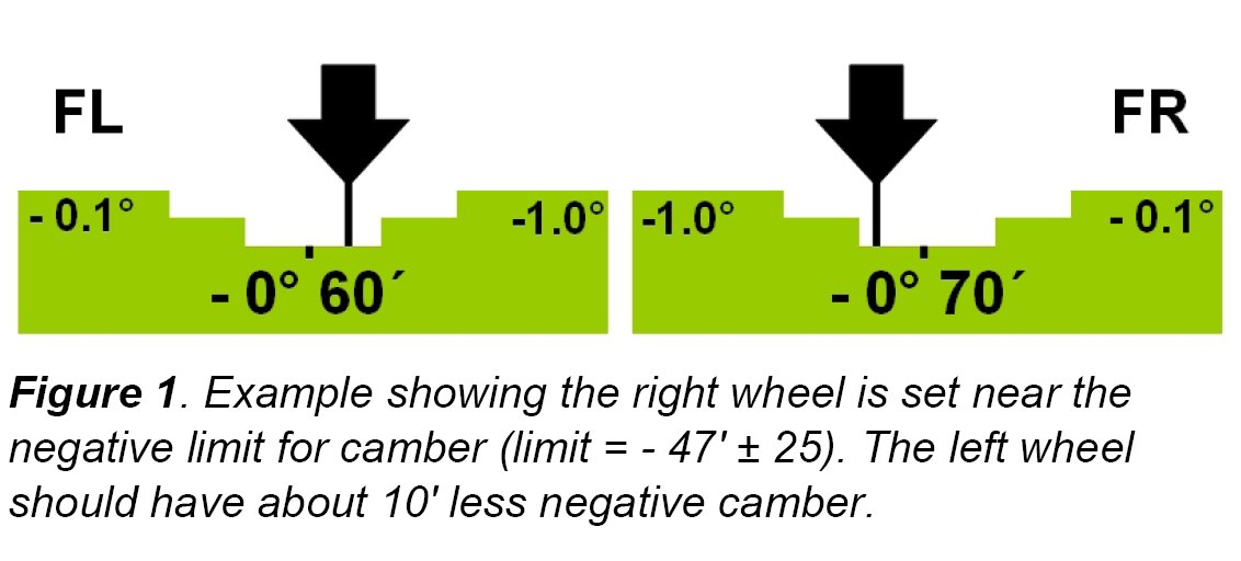 Adjust the camber on the front right near to the negative limit of the allowable adjustment specifications.