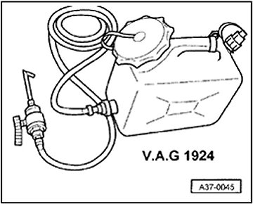 - Secure container of ATF filler tool VAG1924 as high up on vehicle as possible.