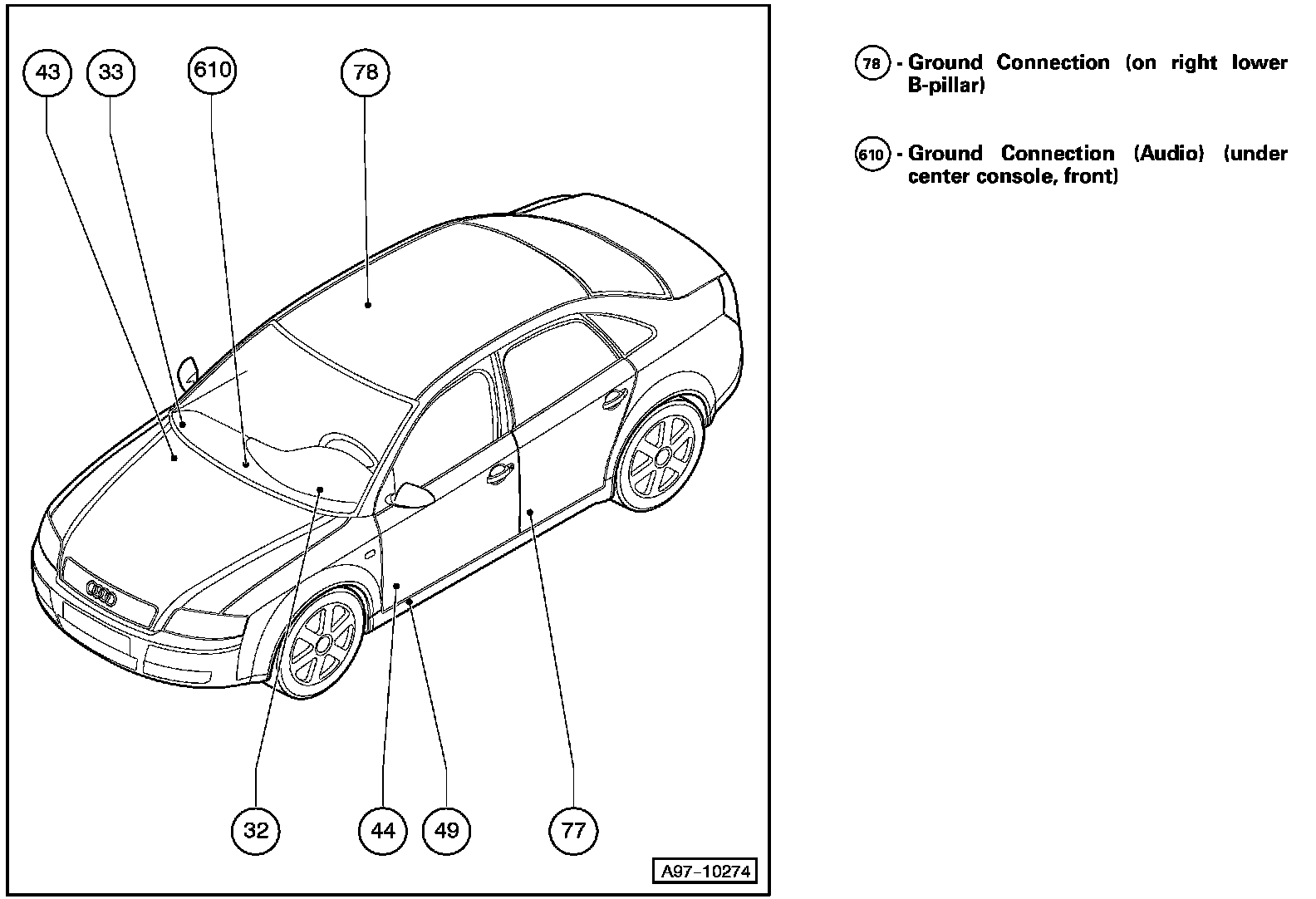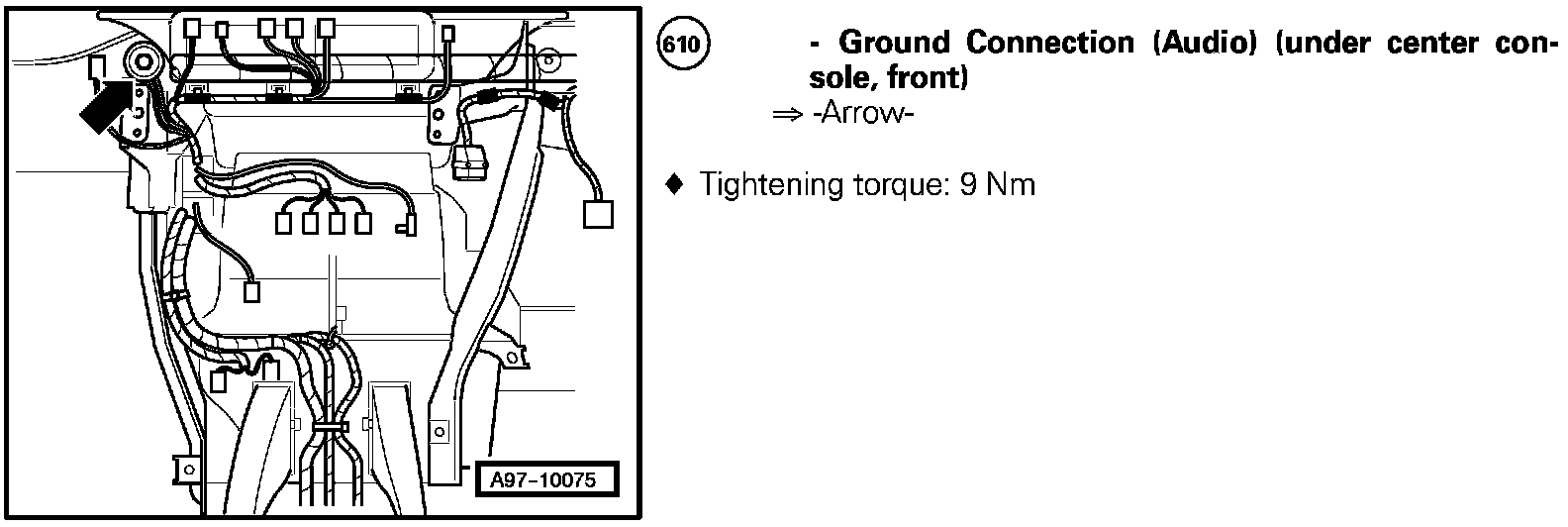 Ground Connection (Audio) (Under Center Console, Front) 610: