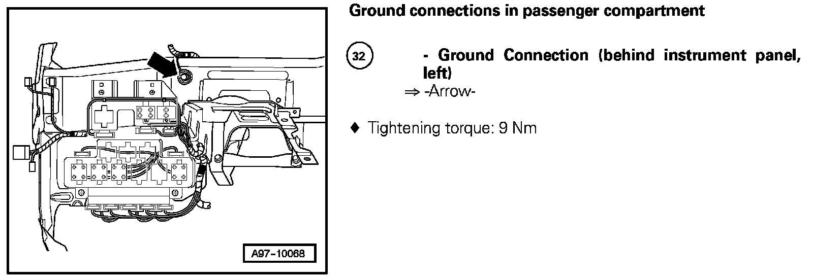 Ground Connection (Behind Instrument Panel, Left) 32: