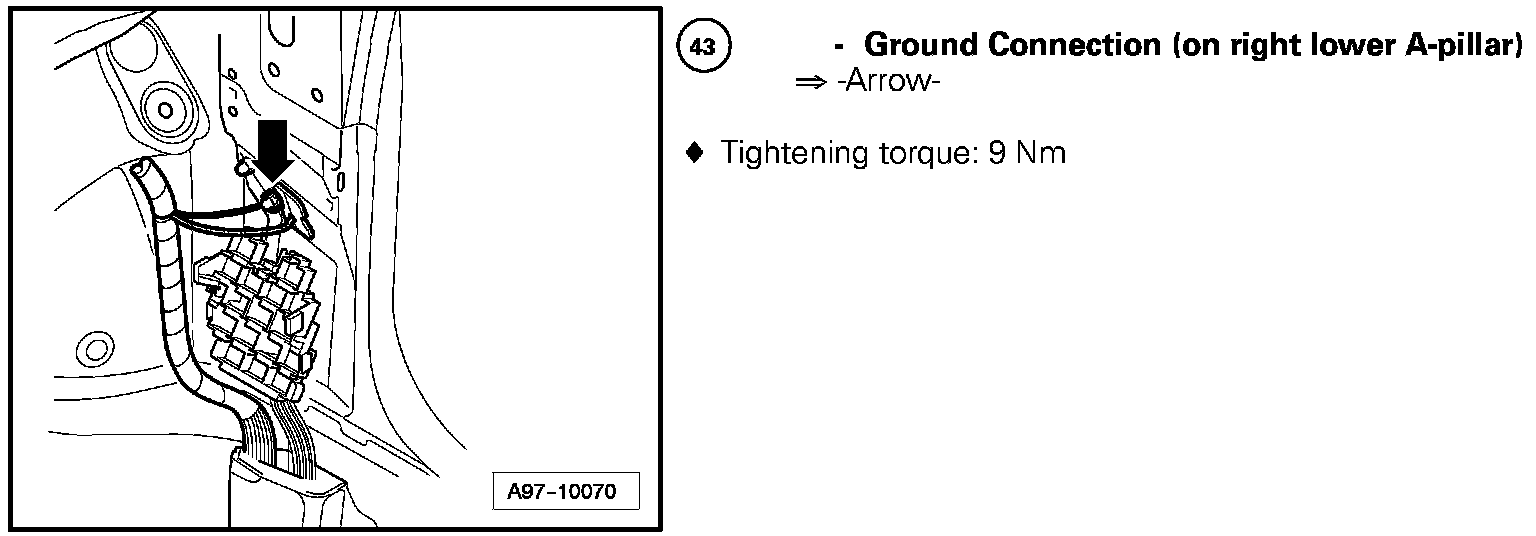 Ground Connection (On Right Lower A-pillar) 43: