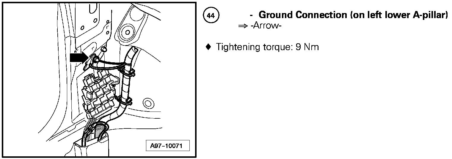 Ground Connection (On Left Lower A-pillar) 44: