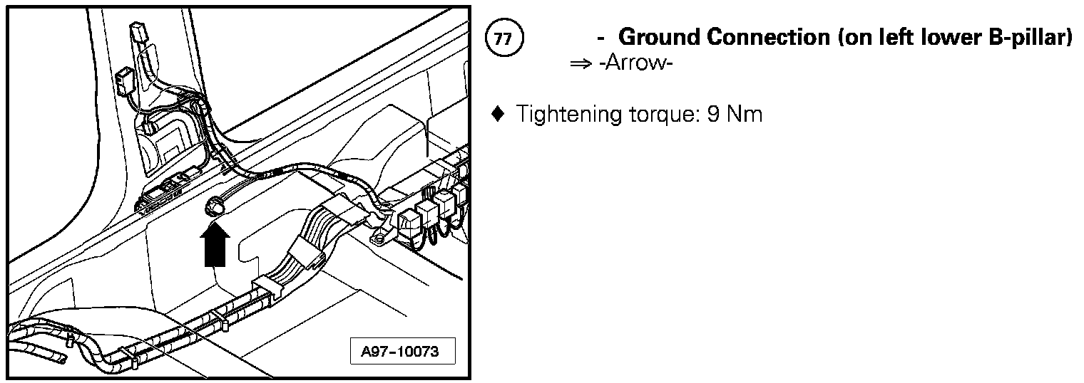Ground Connection (On Left Lower B-Pillar) 77: