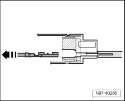 - At the same time, push release tool in the direction of terminal housing and pull released contact out of terminal housing - arrow -.