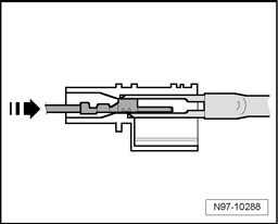 - Grasp contact at wire and push gently into terminal housing - arrow -.