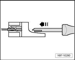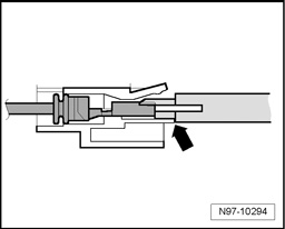 - Guide release tool (that fits terminal housing) into release channel on terminal housing - arrow -.