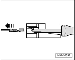 - At the same time, push release tool in direction of terminal housing and pull released contact out of terminal housing - arrow -.