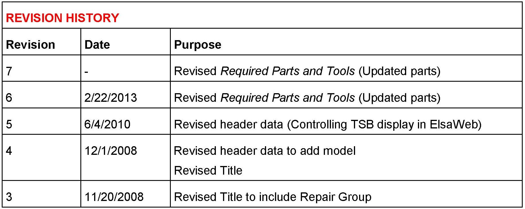 All parts and service references provided in this TSB are subject to change and/or removal. Always check with your Parts Department and service manuals for the latest information.