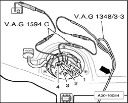 - Connect a jumper cable from a Electrical connector test lead set to terminal - 4 - of the fuel delivery unit and to vehicle Ground (GND).