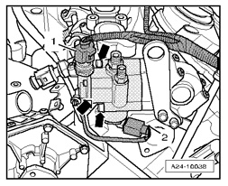 NOTE: The 3.2L 6-Cyl. 4 V (BKH) engine is equipped with two different Low Fuel Pressure Sensors G410 designs. One design is integrated into the high pressure fuel pump and must be replaced as a complete assembly. The second design is not integrated into the high pressure fuel pump and may be replaced separately.