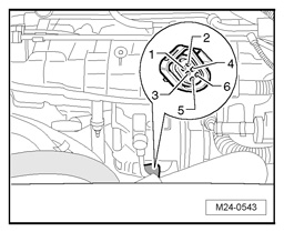- Disconnect the Throttle Valve Control Module J338 electrical harness connector - 1 -.