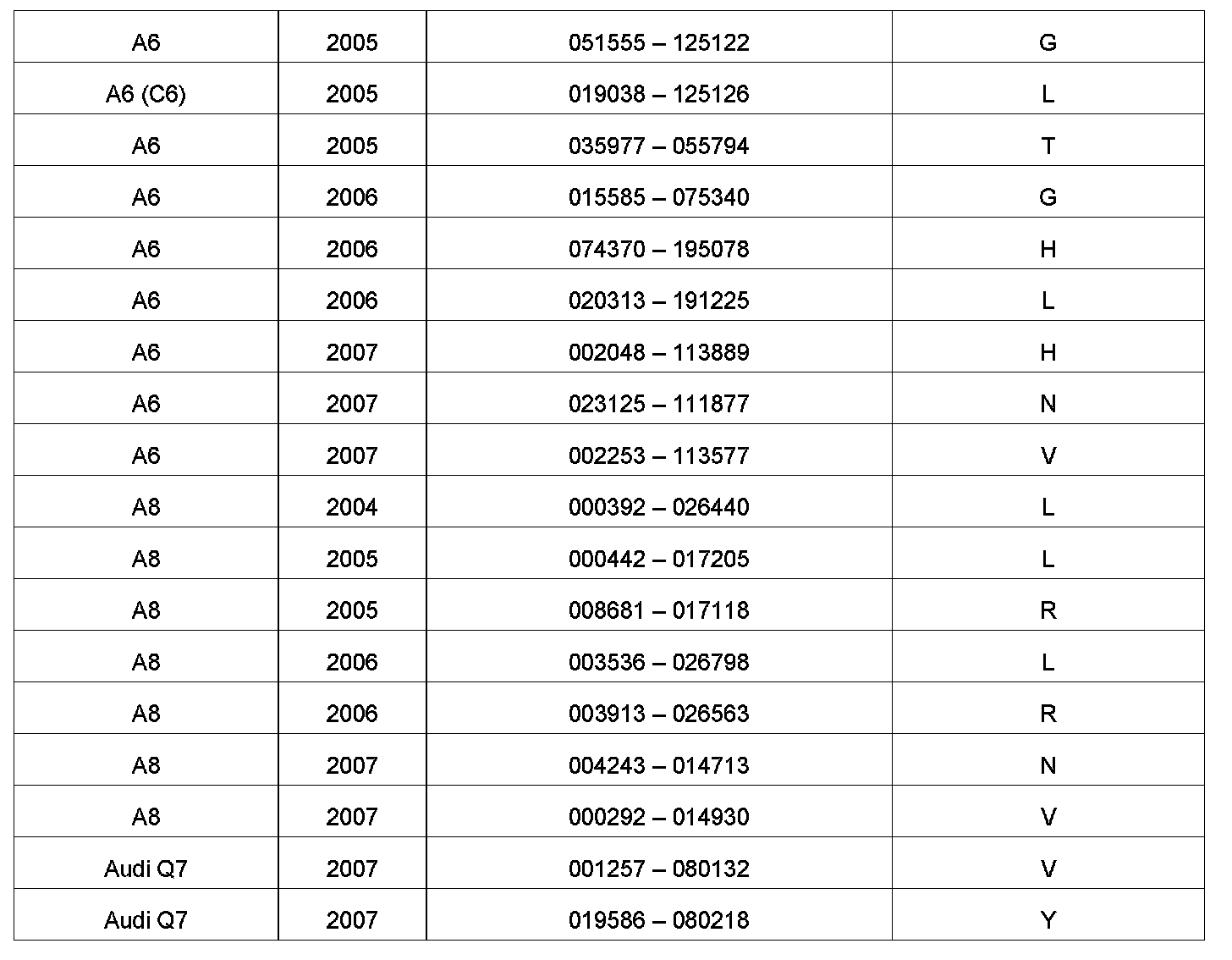 ^ Campaign 28F2/J1 has been performed. (Model year 2002 - 2007 only)